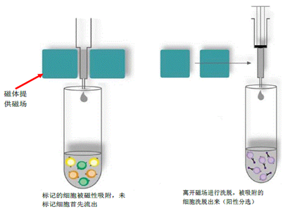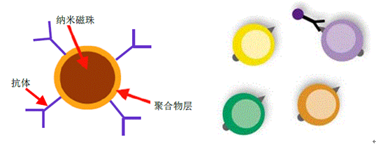 2、磁性微珠直接或者間接偶聯(lián)在抗體上,從而與細(xì)胞相連進(jìn)行標(biāo)記(如下圖);
