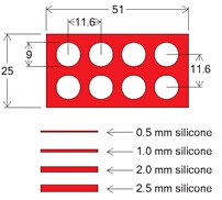 硅膠隔離貼片,又稱硅膠墊密片、試劑壩、硅膠貼封片等??捎糜谕恍酒系亩鄻悠贩磻?yīng),珍貴微量樣品的檢測等等。隔離片可使加樣更準(zhǔn)確,防止樣品間的交叉反應(yīng),且與配套雜交反應(yīng)蓋片合用還可使加樣更容易,反應(yīng)和雜交更均勻,防止反應(yīng)液揮發(fā),避免空氣中灰塵污染,是各種微陣列芯片進行雜交或免疫反應(yīng)的理想輔助工具。該產(chǎn)品可以壓力粘貼,可干凈去除。硅膠屬于惰性材料,對生物樣品無不良影響,如果用來培養(yǎng)敏感性細胞,建議選用新型的無色透明的CultureWell硅膠貼片。