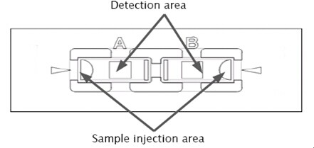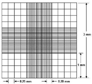 C-Chip (DHC-N01)是用于手工計(jì)數(shù)的一次性塑料血球計(jì)數(shù)板, 不但能精確的控制體積,而且操作簡(jiǎn)單。包括兩個(gè)閉合的小室,每個(gè)小室有兩個(gè)樣品進(jìn)出口(圖2)。DHC-N01格柵和改良式紐鮑爾格柵很相似。包括九個(gè)大格,每個(gè)大格為1×1mm ,每格深度為0.1mm。每個(gè)大格總體積為0.1mm3或者10-4cm3(圖1)。正中心的一個(gè)大格經(jīng)過(guò)三重分割又被分成25個(gè)小格,四角上的四個(gè)大格分別被分成16個(gè)小格。