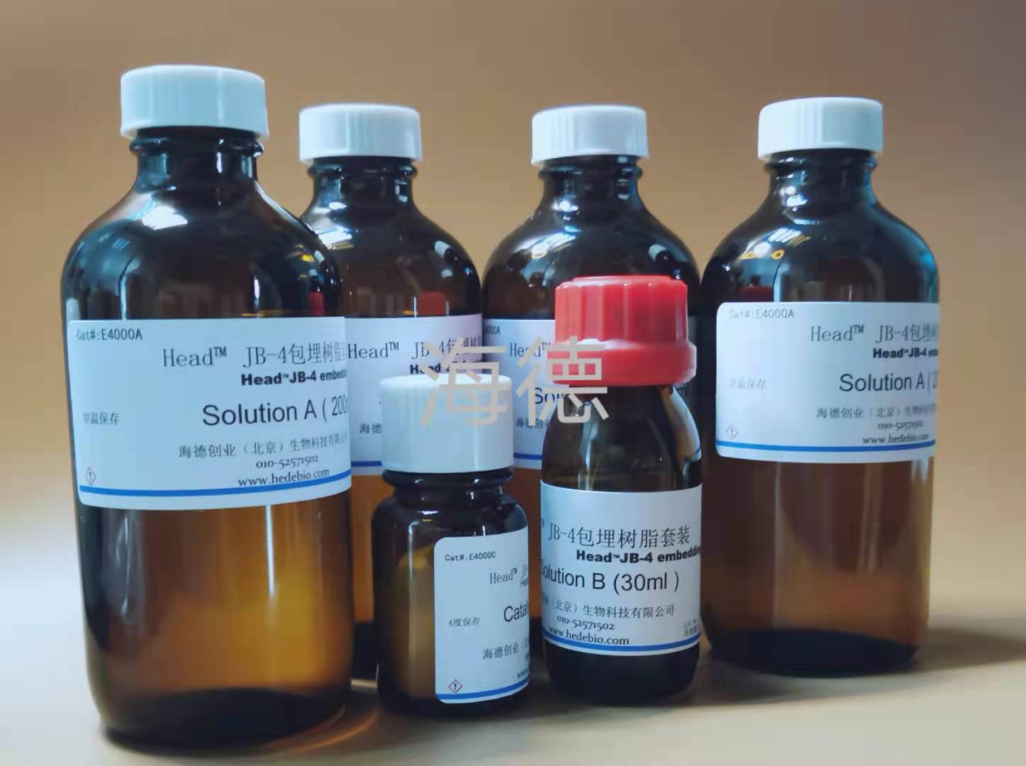 低溫包埋樹(shù)脂試劑盒Lowicryl是丙烯酸酯類樹(shù)脂,包括K4M、K11M、HM20、HM23等, 其主要特點(diǎn)是在低溫下(K4M:-35℃,K11M : -60°C,HM23: -80°C,HM20:-70℃)仍保持低粘度,并具有在紫外光(波長(zhǎng)360nm)照射下聚合的能力,均非常適用于電鏡免疫組織化學(xué)。在這些包埋劑中,K4M和K11M具有親水性(極性樹(shù)脂),能較好地保持組織細(xì)胞的微細(xì)結(jié)構(gòu)和抗原性,特別適于免疫細(xì)胞化學(xué)染色,且背景染色低,是超微結(jié)構(gòu)定位組織細(xì)胞抗原的良好包埋劑。HM20和HM23為疏水性(非極性樹(shù)脂),圖像反差好,較適于掃描電鏡和透射電鏡的暗視野觀察標(biāo)本制作。
