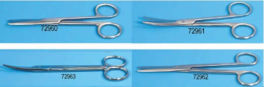 又稱組織剪,或者梅氏剪。組織解剖剪刀薄、銳利,有直彎兩型,大小長短不一,主要用于分離、解剖和剪開組織,通常淺部操作用直解剖剪,深部操作一般使用中號或長號彎解剖剪。