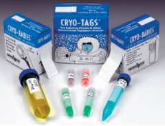 提供Diversified Biotech公司生產(chǎn)的大小不同,顏色各異的低溫標(biāo)簽。Cryo-Babies®系列標(biāo)簽是小標(biāo)簽,對(duì)應(yīng)的Cryo-Tags®是大標(biāo)簽。標(biāo)簽均由塑料聚烯烴制造,可以耐受常溫和低溫的貯存環(huán)境(液氮的-196°C也沒(méi)問(wèn)題)。該系列標(biāo)簽可以粘貼于塑料、玻璃、金屬等物體表面,沸水浴100°C中以及干熱溫度達(dá)150°C時(shí)均不干裂、剝落和降解。此外,標(biāo)簽抗多種試劑、油、有機(jī)試劑、腐蝕性試劑以及其它可以導(dǎo)致剝落的潛在物。室溫下水中浸泡24小時(shí)以及100%濕度35°C環(huán)境下24小時(shí)均沒(méi)有問(wèn)題。