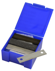 配套切片機(jī)使用的不銹鋼刀,Model 7550-1-SS。根據(jù)客戶(hù)的反饋修訂設(shè)計(jì)出來(lái)的一款受到客戶(hù)稱(chēng)贊的切片刀,嶄新的包裝易于拿取刀片,雙面刃形,鋒利的刀鋒,硬度達(dá)56洛氏硬度。可以一次性使用或者滿(mǎn)足一天的工作后換刀。使用的刀夾必須是2003年以后生產(chǎn)的新的機(jī)型Vibroslice。38mm x 9mm x 0.5mm