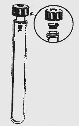 二、螺口厭氧試管:規(guī)格Ø 16 x 125 mm,一般配膠塞和空心螺口蓋一起使用。