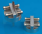 這種固定器是用來固定各種垂直的薄的樣本,它的直徑為25mm,厚度為10mm?;⒖谀軌驃A持最薄3mm厚的樣本。彈簧保證樣本垂直,以便對它的橫截面進(jìn)行研究。這種固定器對于研究硅片橫截面是非常有幫助的。通過適配銷和你的儀器連接。
