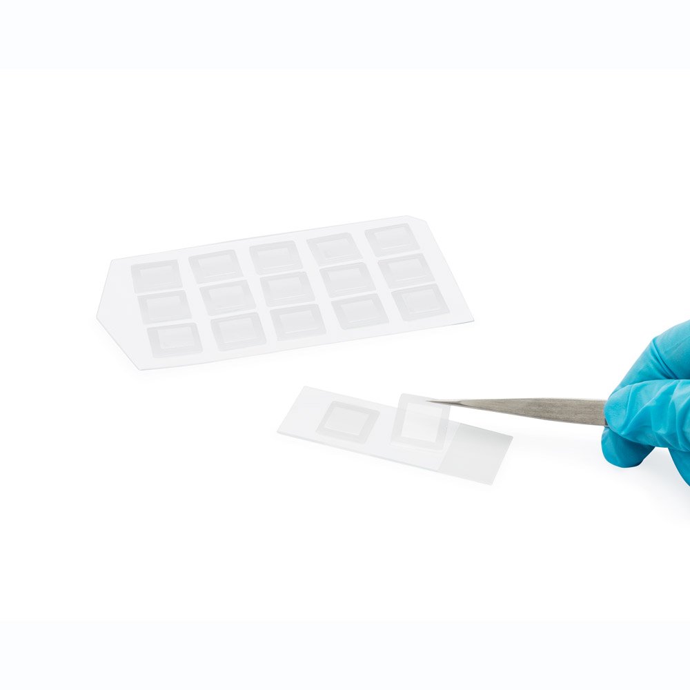 細(xì)胞培養(yǎng)時(shí),下層的硅膠片可以牢固吸附培養(yǎng)器皿的表面,而上層的蓋玻片與硅膠片也牢固貼在一起,避免了培養(yǎng)過程中蓋玻片的移動(dòng)。培養(yǎng)完畢進(jìn)一步實(shí)驗(yàn)也變得簡(jiǎn)單快捷,帶有硅膠底片的蓋玻片,直接貼于載玻片上進(jìn)入下一步實(shí)驗(yàn),或者倒扣在滴有溶液的載玻片上,硅膠片在上層作為蓋片防止溶液的蒸發(fā)。
