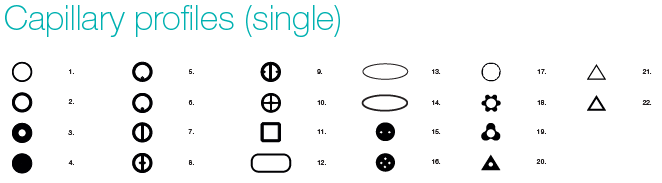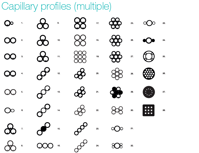 原產(chǎn)德國的多孔道毛細(xì)管,分為兩大類別,單管多孔道(single)和多管排列多孔道(multiple)。常見的圓形內(nèi)的多孔道排列,給出完美的幾何對稱,例如θ玻璃毛細(xì)管,這種對稱是毛細(xì)管中層流的產(chǎn)生所必需的,同時(shí)也能限制流動(dòng)。