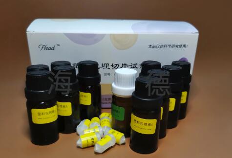 這是一款丙烯酸類塑料包埋切片試劑盒,媲美于傳統(tǒng)的塑料包埋切片865試劑盒。本試劑盒含有動物組織樣品塑料包埋所需的整套試劑,使用本試劑盒可以方便快速地完成組織固定,組織包埋,組織染色等操作。本試劑盒適合包埋各種動物組織:腦、肺、皮膚、肌肉、胃、腸、胰、肝、心、脾、骨髓、骨骼、神經(jīng)、膽等組織標本。由于本試劑盒采用低溫、常溫反應(yīng),故采用本試劑盒包埋的樣本,其組織中細胞完整,不會被破壞,因此可廣泛用于病理檢驗、動物檢驗時的標本制備。使用本試劑盒制成的切片,無需脫鈣,可直接染色,適合于常規(guī)染色、組織化學(xué)染色及部分免疫組織化學(xué)染色。