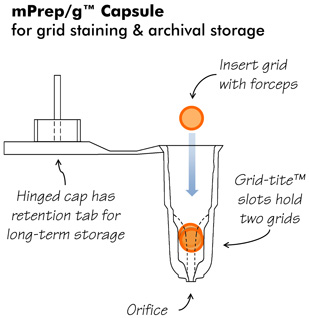 mPrep/g™ Grid Processing Capsules in Storage Box, 16 Capsules, 16 Blank Label Sets